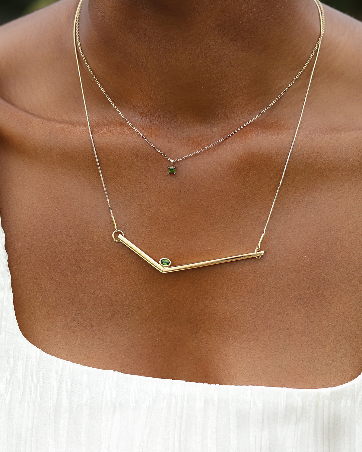 Dieses Set vereint zwei unserer beliebtesten Chromdiopsid-Halsketten – minimalistisch, modern und voller Bedeutung.