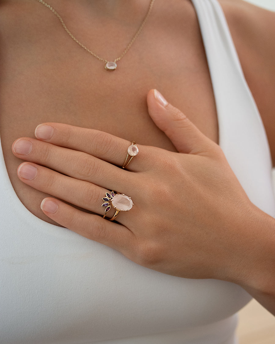 Discover other pieces of jewelry with the energy of Rose Quartz, which further enhance the energy of this piece. Create your own individual set of rings, earrings, necklaces and bracelets.